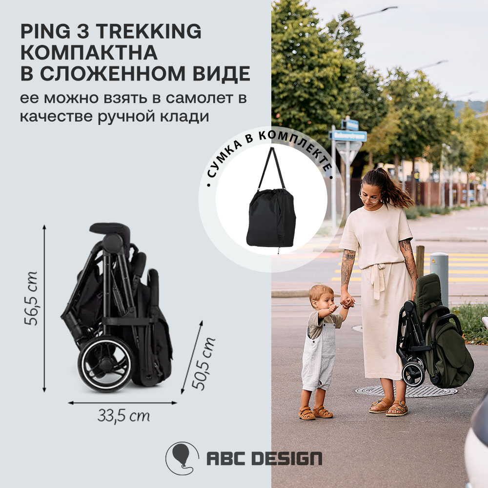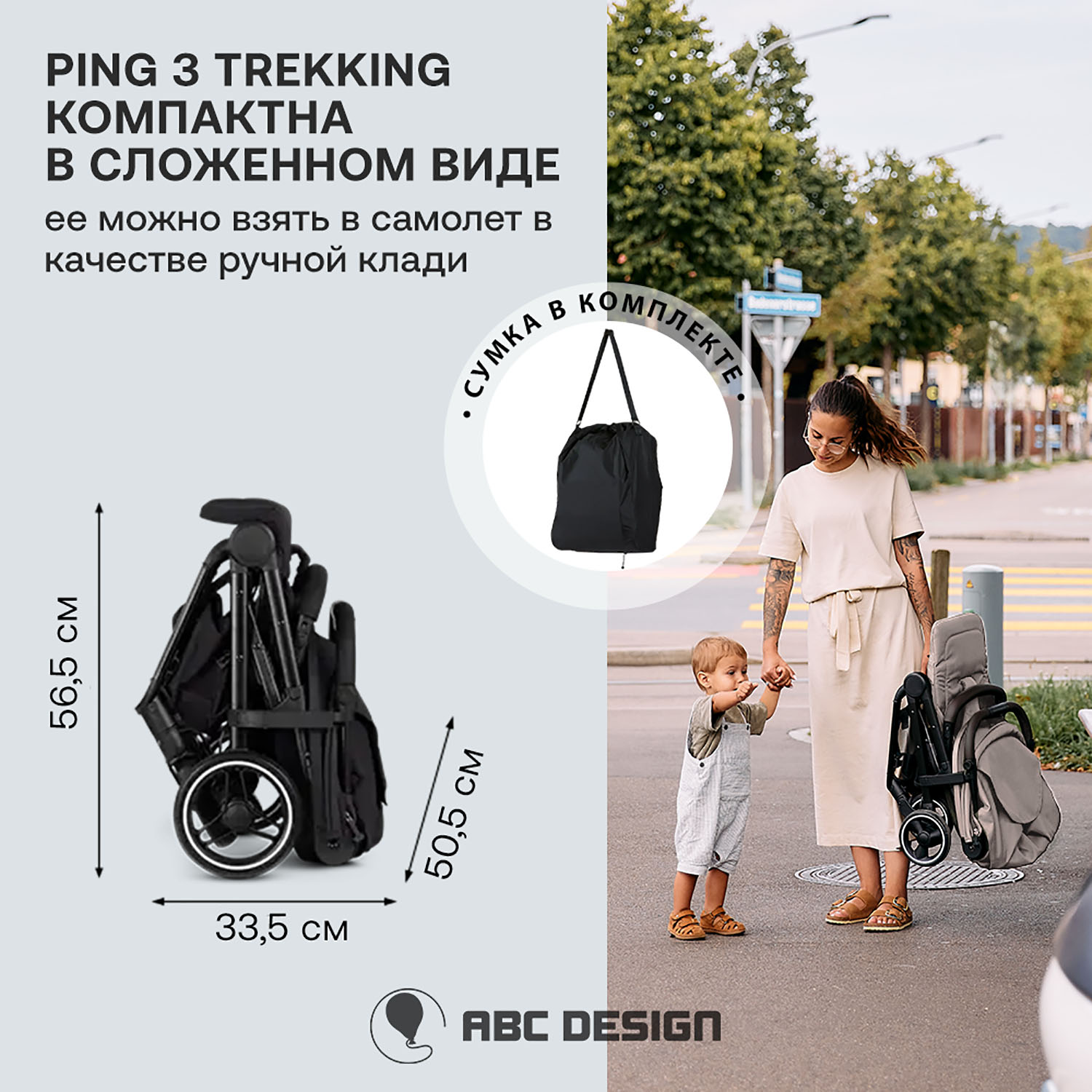 Ping 3 Trekking — ваш идеальный спутник в путешествии. Благодаря небольшому размеру в сложенном виде и легкому весу он помещается в машину, автобус, поезд и даже в самолет. Просто сложите, перенесите и раскладывайте — делая путешествие с ребенком легким и гибким.