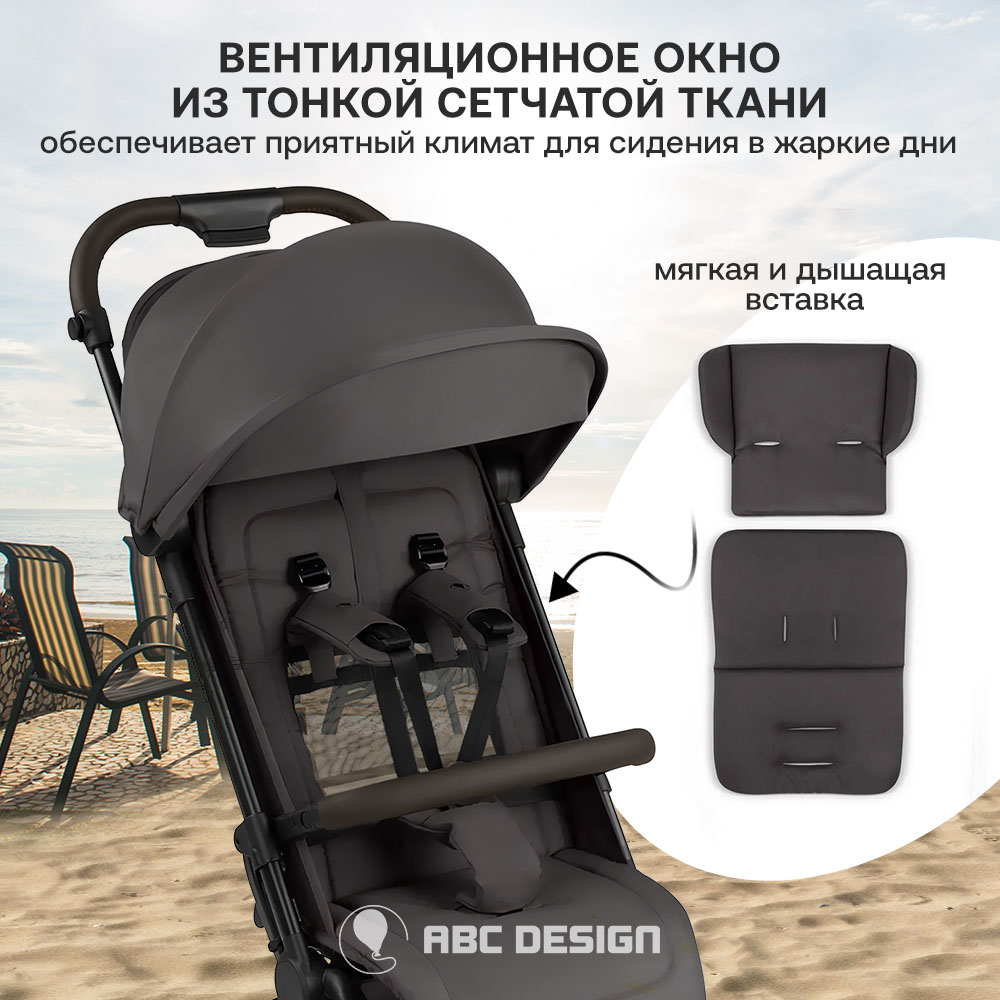 Мягкая и дышащая вставка комфортного сиденья обеспечивает дополнительную поддержку в коляске. Вентиляционное окно из тонкой сетчатой ткани, встроенное в спинку, обеспечивает приятный климат для сидения благодаря оптимальной циркуляции воздуха.