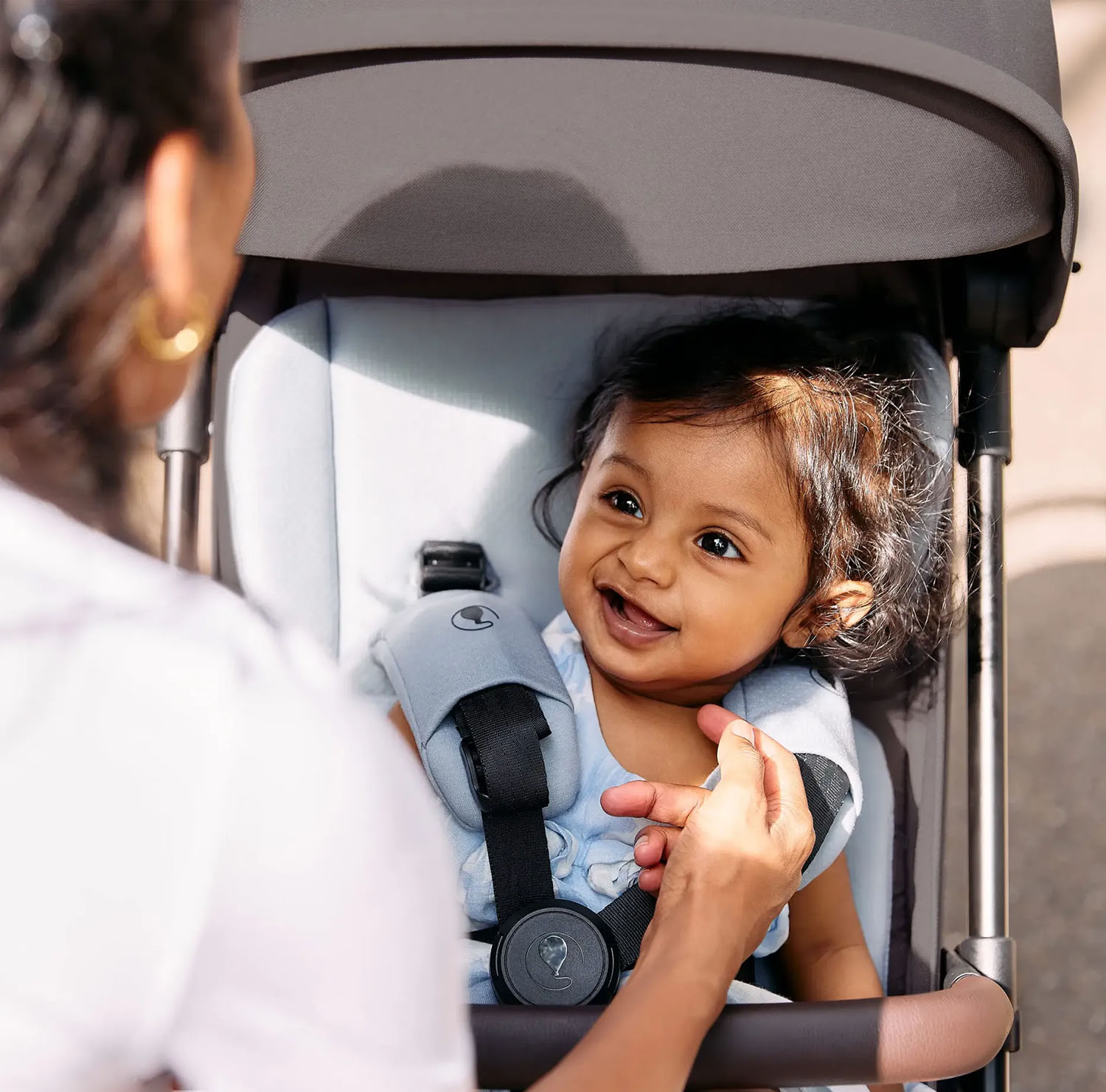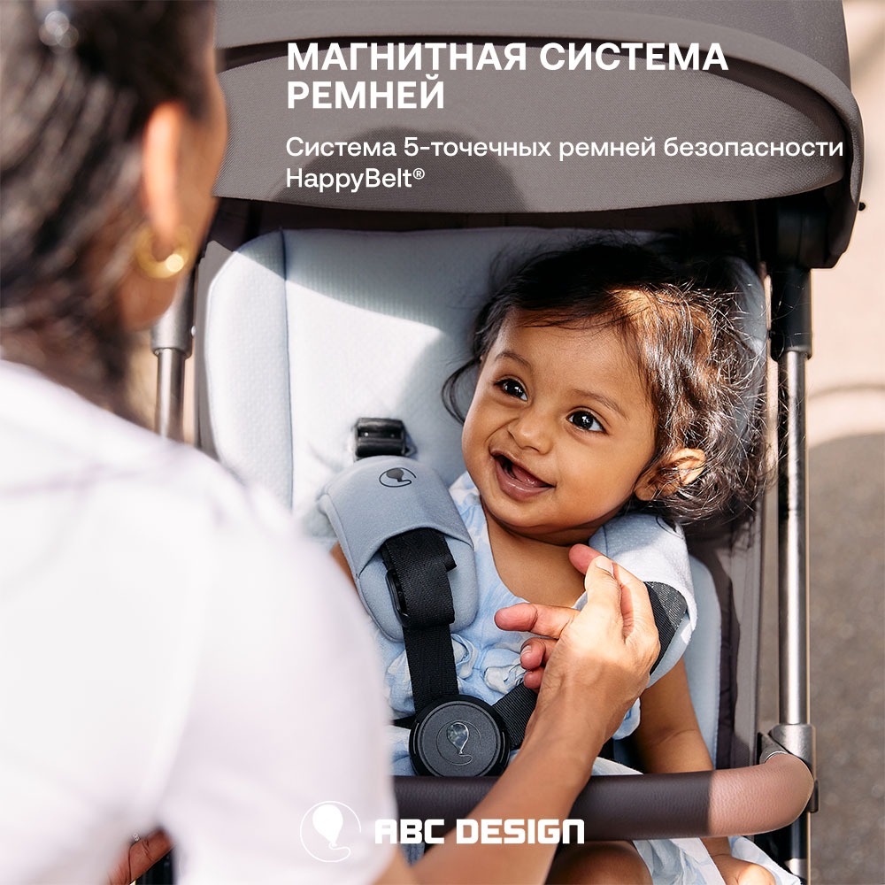 Очень большой и выдвижной солнцезащитный козырек с фактором защиты UPF 50+ надежно защищает вашего ребенка от солнечных лучей, пока он в полной мере наслаждается своими прогулками. Ваш ребенок, конечно же, идеально защищен. Умная 5-точечная система ремней безопасности HappyBelt® легко регулируется благодаря практичной магнитной застежке и бесступенчатой регулировке ремней спереди. Мягкие наплечные ремни слегка выступают из спинки, так что вы можете легко разместить своего ребенка в коляске.